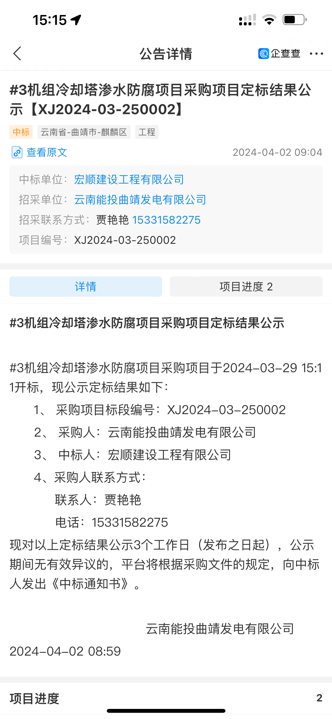 热烈祝贺我公司中标云南机组冷却塔渗水防腐项目