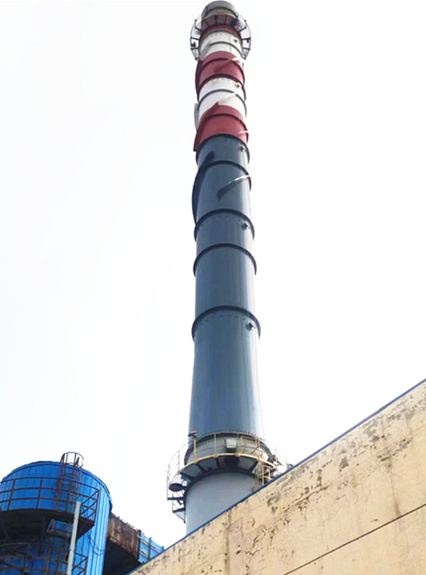 郭家热源钢烟囱堵漏防腐顺利完工